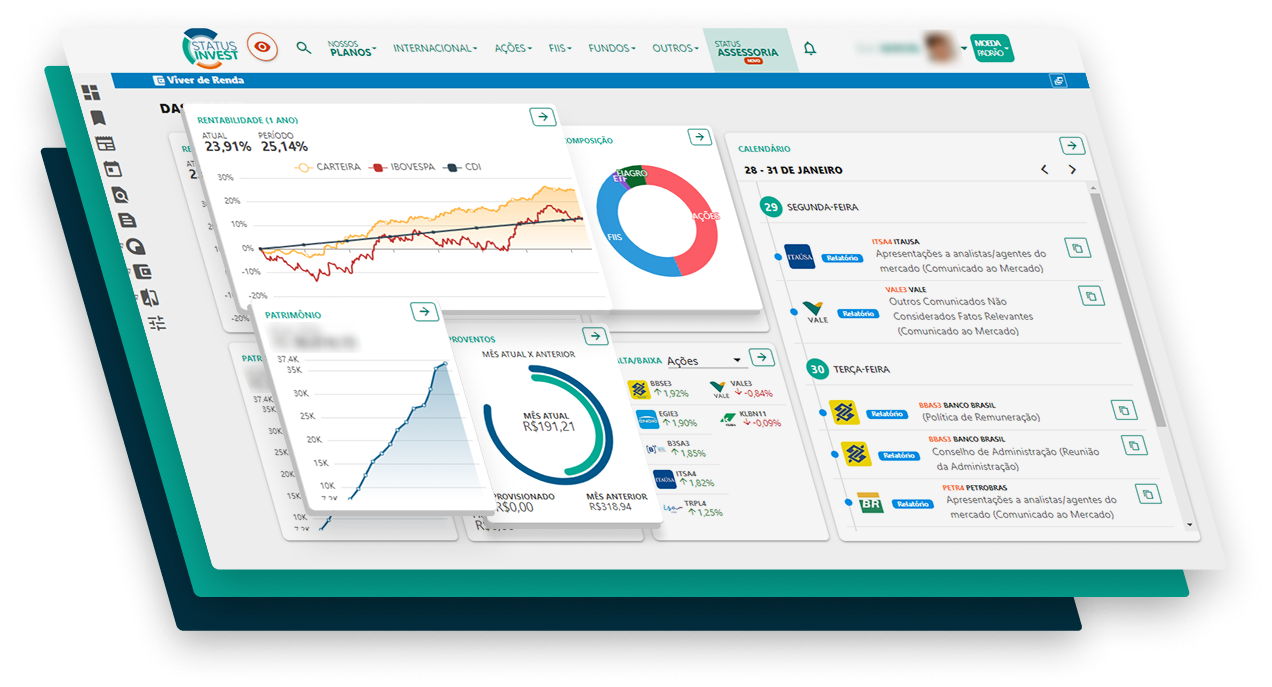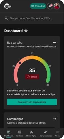 Monitore seus ativos, ajuste sua carteira e proteja seu patrimônio sem planilhas e achismos.